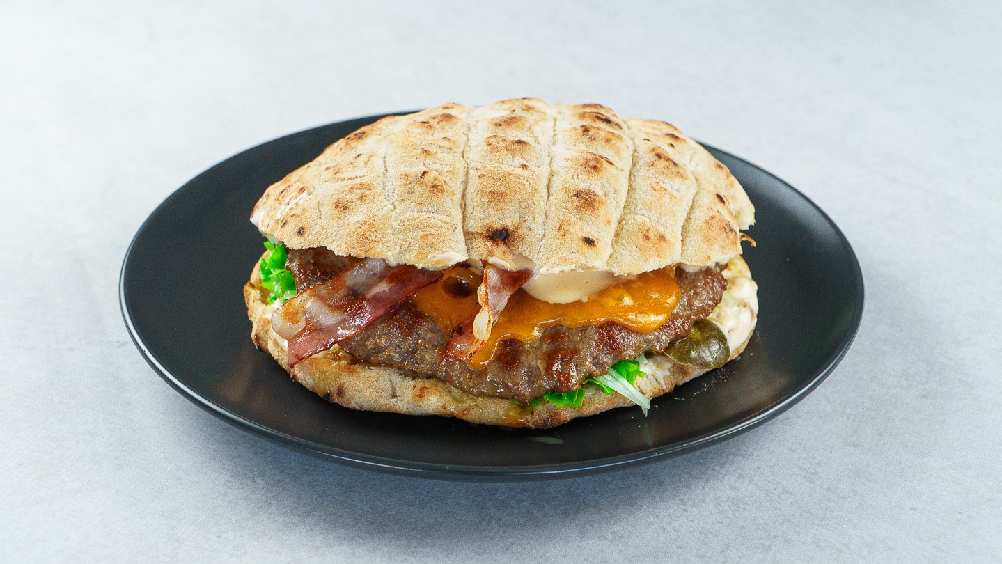 100 % JUNEĆI ODREZAK, BRIOCHE PECIVO, DIMSI SIR, ŠPEK I DODACI